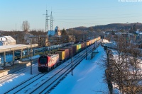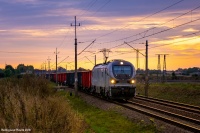 111Eo-007 z kontenerami do portów, mknie szlakiem Zaryń - Piotrków Kujawski.