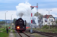 Powrotny "Nicolaus Express" odbywa szybki postój w Legnicy, pośród niekończącego się remontu. Zdjęcie trochę ryzykowne, 15 sekund czasu ekspozycji.