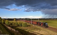 Otok- Poddębice- E6ACTab-037 prowadzi pociąg towarowy numer 354010/1 w stronę portów.