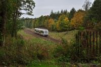 SA132-002 z pociągiem osobowym relacji Wrocław Główny - Jelenia Góra zmierza szlakiem Boguszów Gorce Zachód - Sędzisław w kierunku stolicy Karkonoszy. Charakterystyczną cechą tego składu jest doczepa w postaci wagonu 120A, która kursowała w niektóre dni z Wrocławia do Jeleniej Góry i z powrotem. Ten dziwaczny (jak na relacje tego pociągu) skład wynikał z tego, że szt SA132-002 był wykorzystywany do obsługi jednej pary pociągów Jelenia Góra - Lwówek Śląski - Jelenia Góra. Jako, że zgodnie z ówczesnym stanowiskiem DZPR-u (Dolnośląski Zakład Przewozów Regionalnych we Wrocławiu) jedynym miejscem stacjonowania nowoczesnych pojazdów mógł być PRST Wrocław to konieczne były takie codzienne "podsyły" pod drutem do Jeleniej Góry. Choć stan linii kolejowej nr 274 był katastrofalny i ówczesne potoki na odcinku Wałbrzych Miasto - Jelenia Góra stanowiły kilka (może kilkanaście) procent tego co jest obecnie to jednak SA132 mimo wszystko był za mały zwłaszcza na odcinku Wałbrzych Miasto - Wrocław Główny. W związku z powyższym w niektóre dni do "szynoba" dokładano więc wagon 120A. Natomiast sam fakt zatrudniania pojazdu SA132-002 do obsługi jednej pary pociągów do Lwówka Śląskiego wynikał z tego, że w czerwcu uszkodzeniu uległ nasz jeleniogórski szynobus SA102-001 i w efekcie został przeniesiony do Słupska gdzie oczekiwał naprawy. Z tego powodu na linii lwóweckiej pojawiła się permanentna KKA, która czasem była przerywana (na jednej parze pociągów) występem pojazdu SA132-002. Niestety tak wyglądała wówczas patologiczna kolej na Dolnym Śląsku, który wśród sympatyków i specjalistów od kolei był określany najgorszym województwem w skali kraju jeśli chodzi o ofertę i organizacje kolejowych przewozów regionalnych. Dlatego warto przypominać o tych czasach, tak aby sobie uświadomić, że obecnie mamy złote czasy kolei dolnośląskiej.