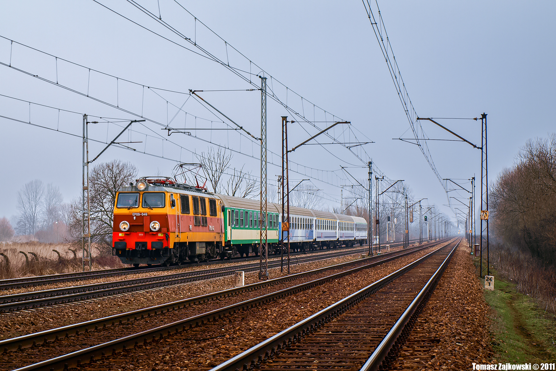 EP09-046 z pociągiem TLK z Warszawy do Krakowa, mknie szlakiem Pruszków - Grodzisk Mazowiecki.