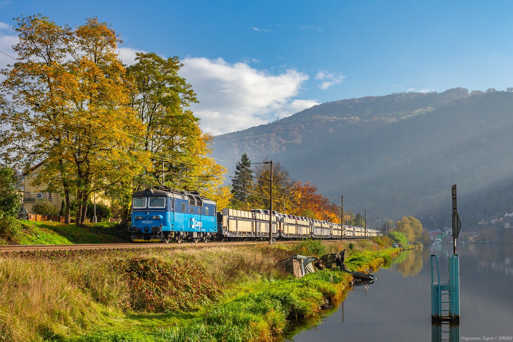 Fajne ale stanowczo mocno leci w prawo, i nie sugerował bym się prostować do tej drabinki w wodzie. Zerknij na lewą stronę kadru, dom, a także samą lokomotywę i słupy trakcyjne. Skoda wygląda jakby jechała fest pod górę.