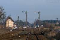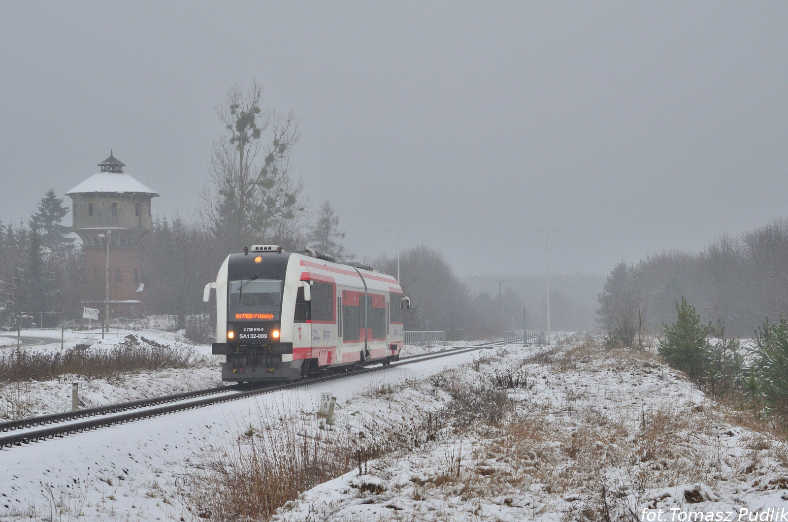 SA132-009 jako pociąg KW 77926 relacji Wągrowiec - Wolsztyn wjeżdża na teren przystanku osobowego Skoki. Po lewej stronie w tle widoczna wieża ciśnień, po prawej stronie kadru widać natomiast jak duży teren zajmowała dawna stacja Skoki. Skoki były kiedyś stacją węzłową, która obsługiwała linię Poznań - Bydgoszcz i Janowiec Wielkopolski - Skoki. Dawniej były tutaj trzy perony i trzy nastawnie.