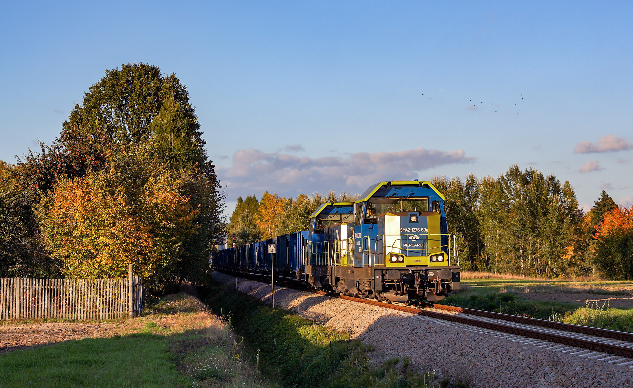 6Dg-1276 + 6Dg-1245 prowadzą skład próżnych wagonów do przewozu żwiru relacji Mielec - Tarnów Filia, mijając Brzeźnicę w świetle promieni powoli zachodzącego słońca. Gdybym strzelił ćwierć sekundy później, czoło lokomotywy znalazłoby się w kompletnym cieniu. :DD