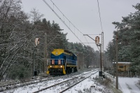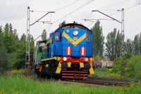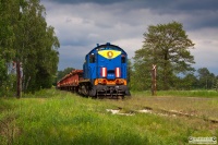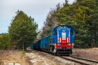 TEM2-222 ze składem węglarek manewruje po bocznicy zakładu BB-POL, odchodzącej od stacji Ruda Chebzie.