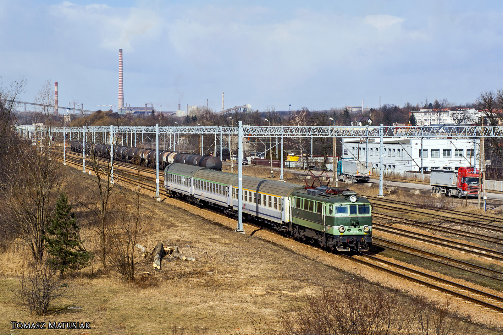 EP07-174 z pociągiem TLK54103 STOCZNIOWIEC przejeżdża przez stację Dąbrowa Górnicza Południowa