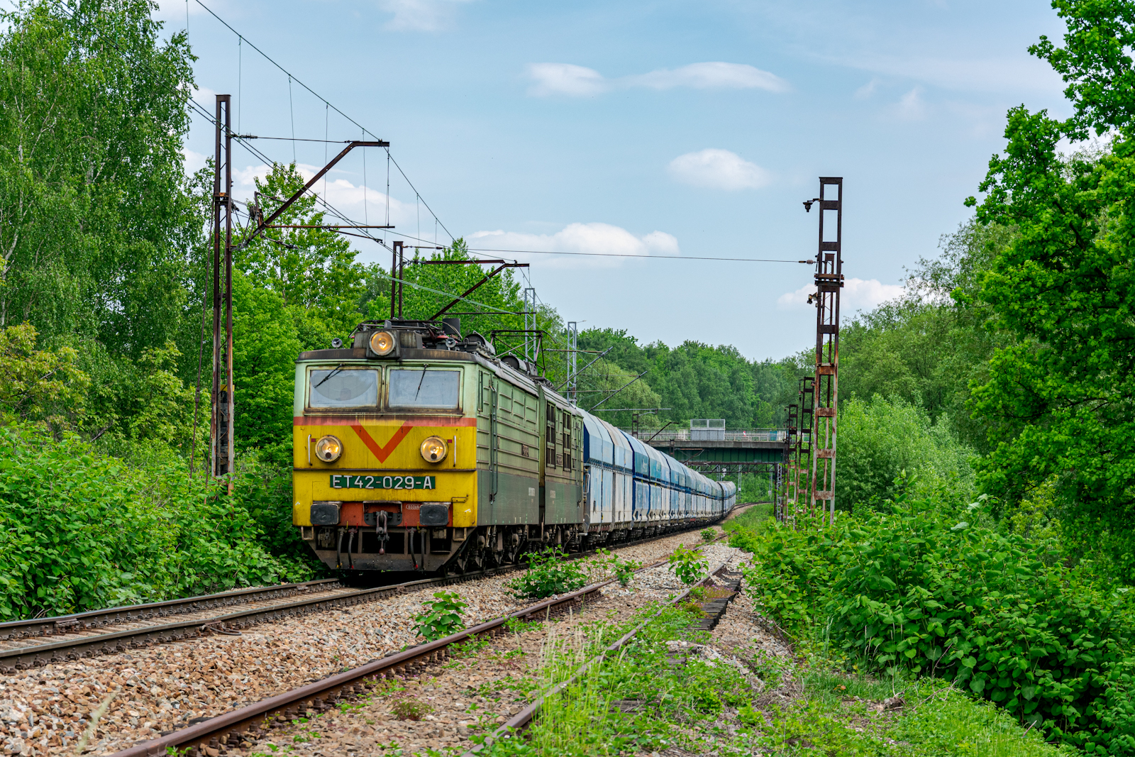 Retro Rusek z pociągiem towarowym nr 464067 rel. Dąbrowa Górnicza Towarowa - Chorula Cementownia mija katowicką dzielnicę Stara Ligota jadąc szlakiem Katowice Muchowiec KMB - podg Panewnik w stronę Rudy Kochłowic.
