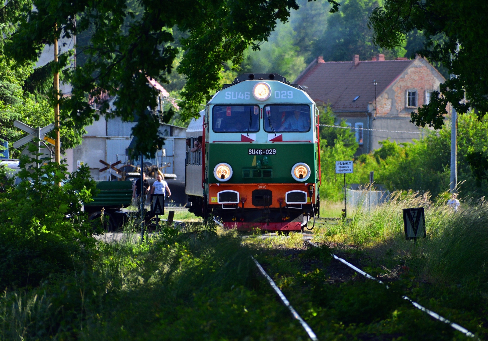 SU46-029 prowadzi pociąg specjalny w ramach akcji "Pożegnanie SU46" wyjeżdżając ze stacji Leśna w kierunku Lubania Śl. Impreza zorganizowana wzorowo, atmosfera świetnia i pozdrowienia dla współtowarzyszy wyprawy jak i wszystkich spotkanych fotografów w dniu wczorajszym.