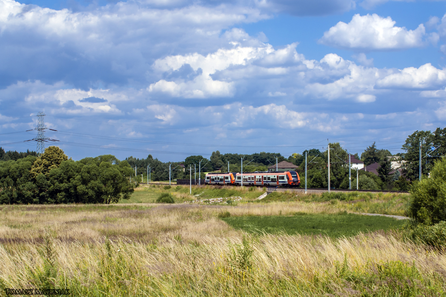 Duet acatusów EN99-004 + EN64-003 jako REGIO34311 Kraków Główny - Katowice. Jednostki chwilę wcześniej opuściły przystanek osobowy Balin
