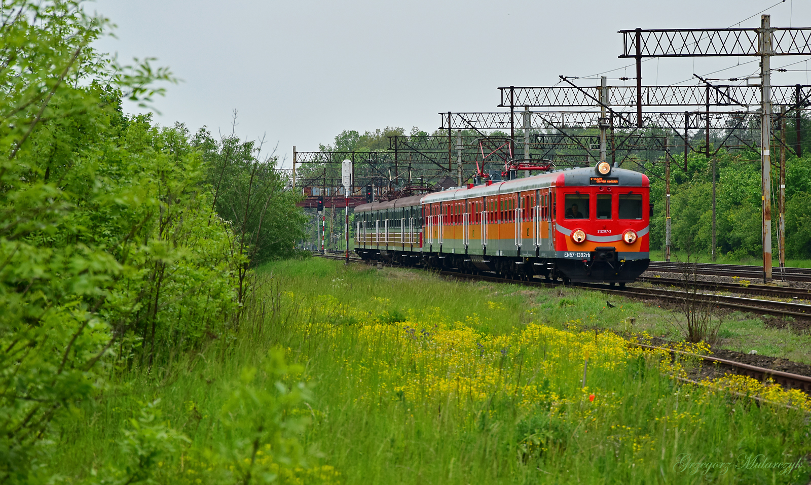 EN57-1392 jako jeden z pierwszych w nowych barwach Polregio, jaki zajechał do Smętowa. Na pozostałych obiegach jeszcze latały kible w popularnej wtedy bordowo szarej malaturze.