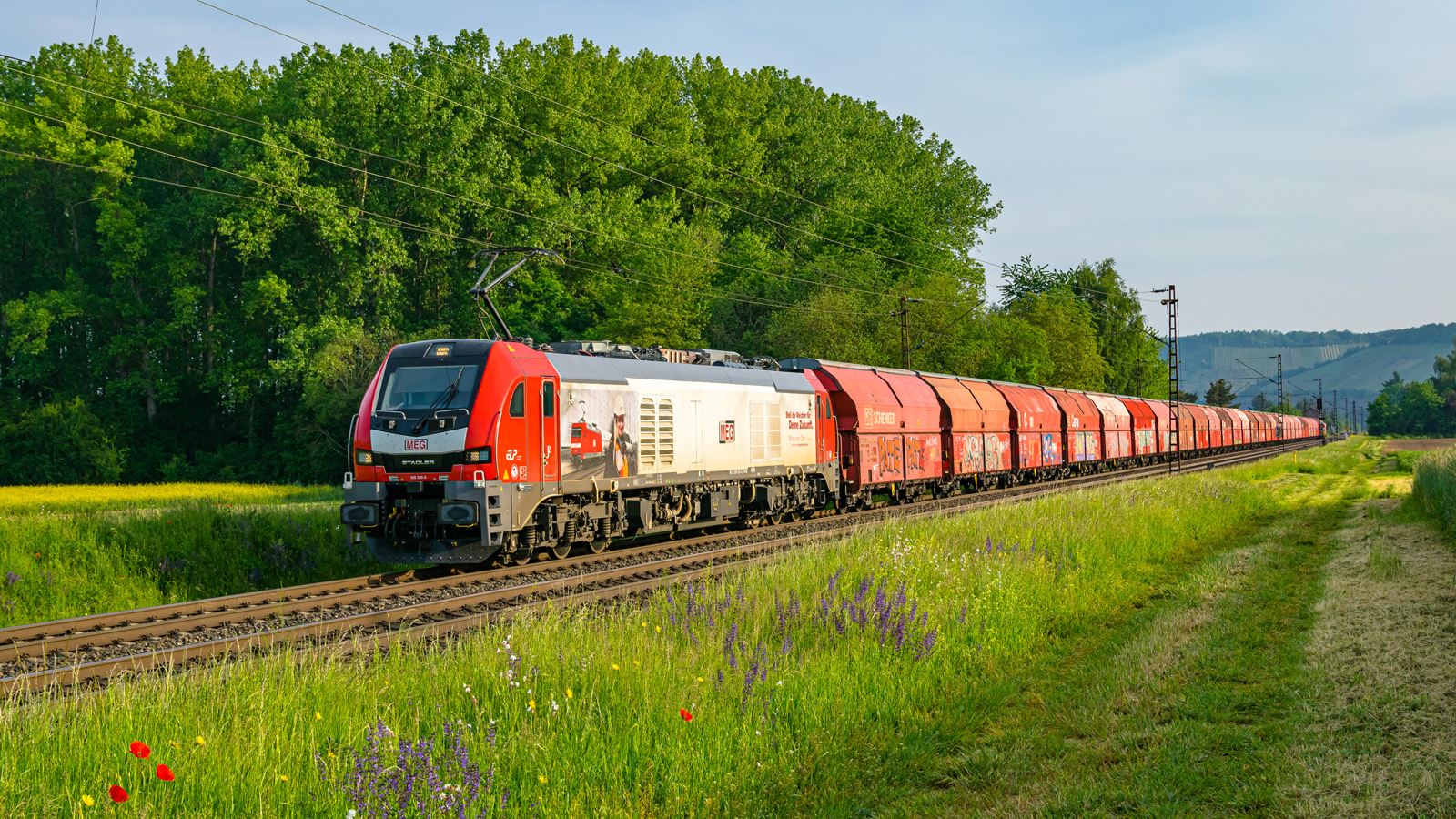 Euro Dual (159 225) MEG z talbotami przejeżdża przez Himmelstadt i jedzie w kierunku Würzburga.
