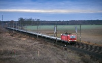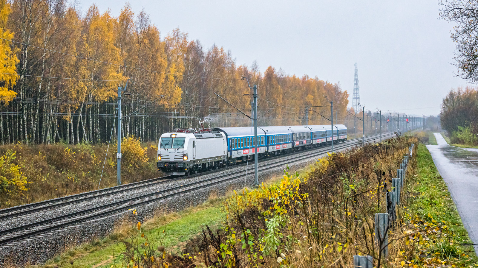 Vectron (6193 571) "Boltik" z Ex 10311 Fotbal express relacji Praha hl.n.-Warszawa Wschodnia jedzie linią kolejową numer 4 "CMK" szlakiem Szeligi-Korytów. Pociągiem podróżowali czescy kibice na mecz z Polską który odbędzie się na Stadionie Narodowym w Warszawie.