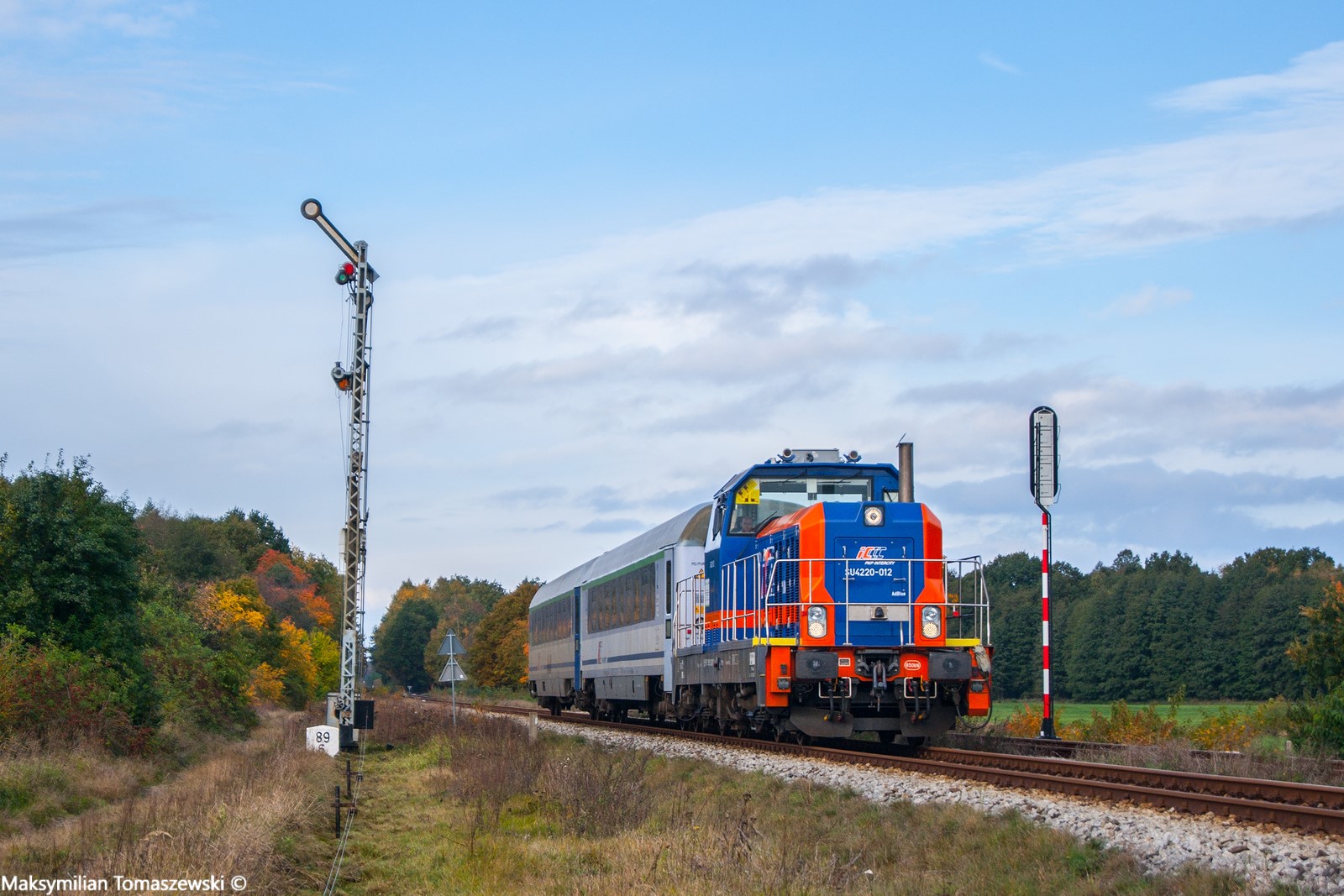 SU4220-012 PKP Intercity z pociągiem IC 7200 Hetman relacji Zielona Góra Główna - Lublin Główny mija podany kształtowy semafor wjazdowy do stacji Rokitki od strony Leszna Górnego (dawniej Modły). Niespełna rok temu semafor przy sąsiednim torze z Chocianowa zastąpiono świetlnym w związku z rewitalizacją tej linii.