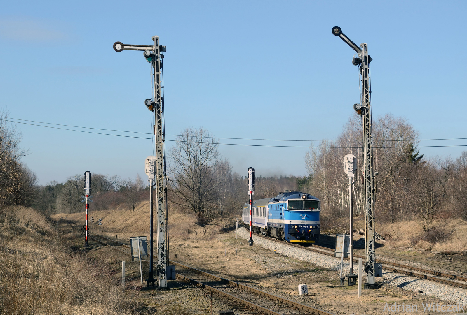 754 046-1 z TLK54102 "Flisak" mija semafory wjazdowe sierpeckiej stacji, gdzie odbędzie postój handlowy. Widoczne są nowozainstalowane, jeszcze nieczynne semafory świetlne, które około dwa tygodnie po wykonaniu zdjęcia przejęły obsługę od klasycznych, kształtowych poprzedników. Po lewej stronie widać linię nr 27 i wjazd od strony Skępego. Obecnie po semaforach kształtowych na północnej głowicy nie ma już śladu, a i na południowej ich obecność dobiega końca.