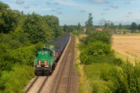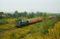 Tamara z próżnym składem koleb po rozładunku surowej rudy miedzi w pobliskim ZWR mija okolice szybów zachodnich wchodzących w skład ZG Polkowice-Sieroszowice jadąc szlakiem Polkowice Główne - Polkowice Zachodnie w stronę Rudnej Zdawczej.