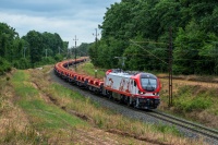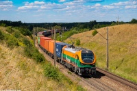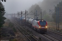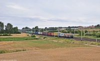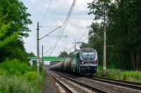 111Ed-001 w duecie z SM42-2039 z składem beczek zbliża się do podg. Dionizów szlakiem od strony Szadka.