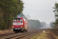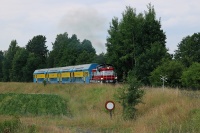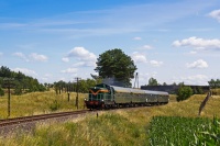 SU42-536 prowadzi pociąg specjalny "Ostrovia" relacji: Warszawa Wschodnia - Ostrołęka. Skład za chwilę dojedzie do stacji Śniadowo.