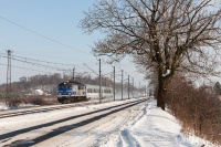 EP07-1036 należąca do Północnego Zakładu PKP Intercity w Gdyni mija posterunek odgałęźny Tropy przejeżdżając przez most nad rzeką Elbląg z pociągiem IC 85107 Gryf relacji Szczecin Główny - Olsztyn Główny.