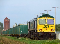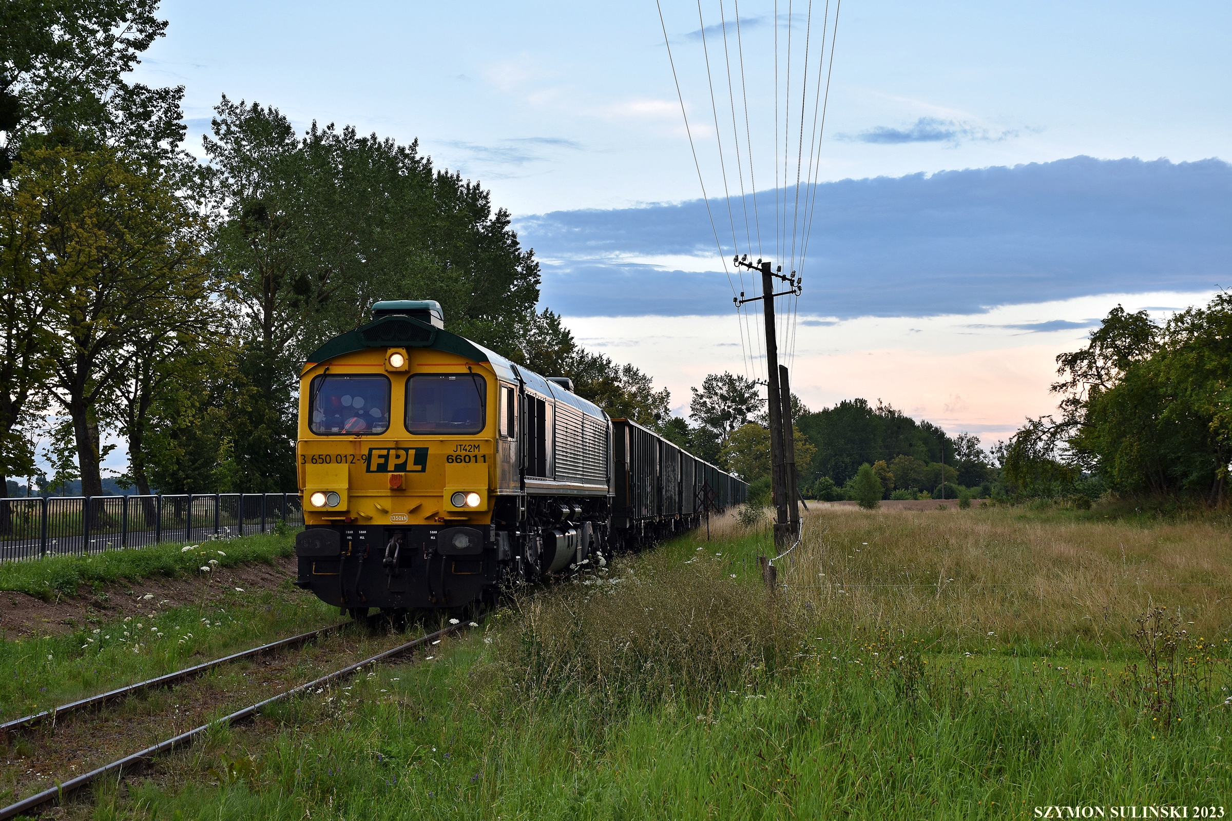Class 66011 należący do przewoźnika FPL podczas postoju w lipcowy wieczór ze składem węglarek na terenie wsi Zakrzewiec w kilometrze 79,6 linii 221. Obok przystanku osobowego Grodzie zorganizowane było składowisko tłucznia wykorzystanego do remontu linii 221. Po zakończonym rozładunku maszyna z węglarkami zjechała jako pociąg roboczy do Braniewa a następnie zaprowadziła skład do Gdańska Zaspy Towarowej.