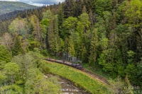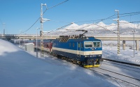 754 050-3 ČD z pociągiem R 923 Krakonoš relacji Praha hl.n - Trutnov hl.n pokonuje podjazd za stacją Červený Kostelec, z której ruszył chwilę wcześniej.