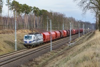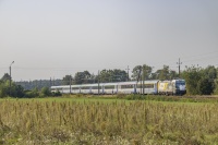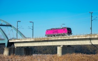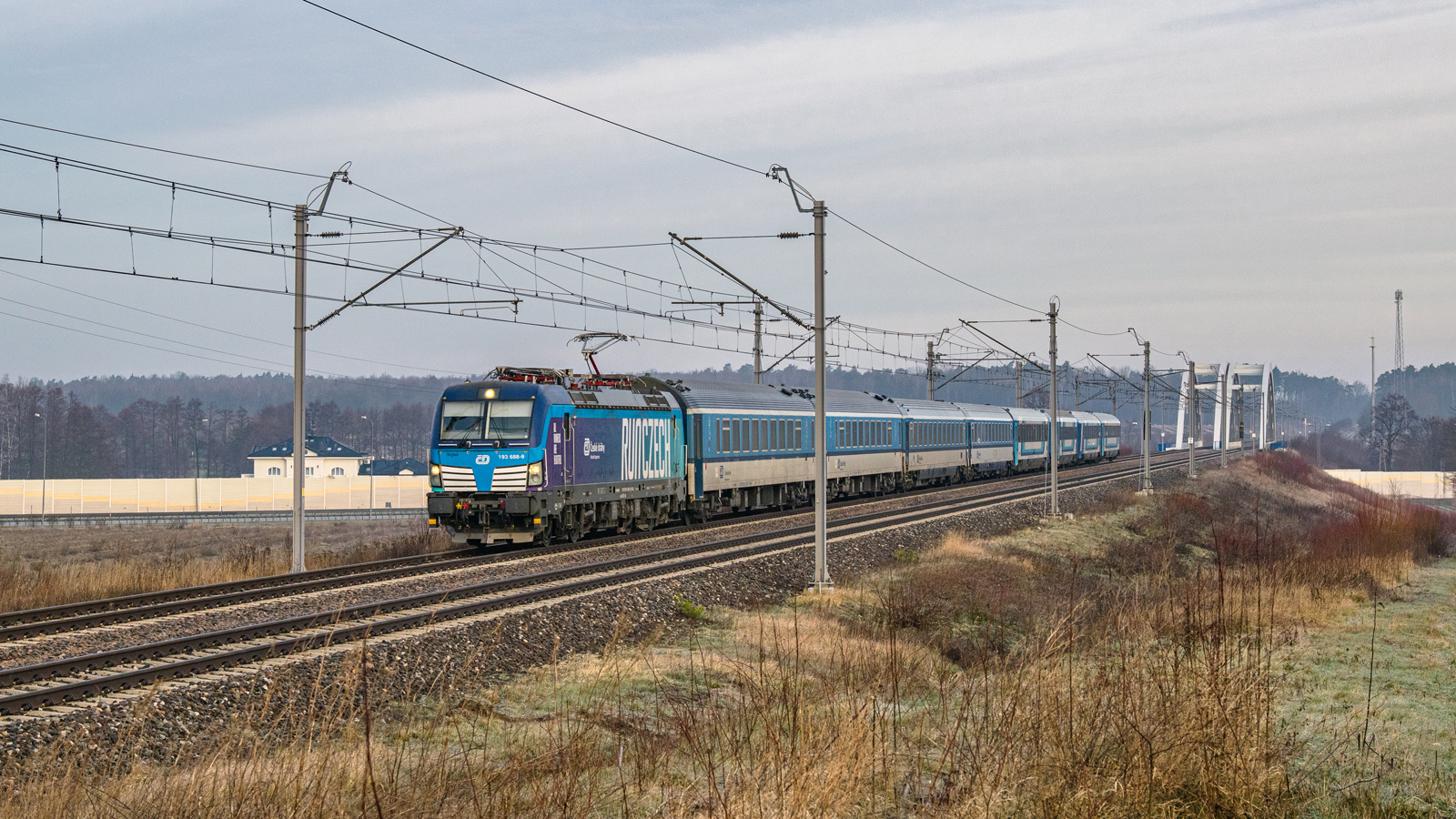 Vectron (193 688) "Mojmir" w okleinie "Runczech" z IC 131 Batory relacji Warszawa Gdańska-Budapest-Nyugati/Praha-Vrsovice jedzie linią kolejową numer 4 "CMK" szlakiem Szeligi-Biała Rawska.