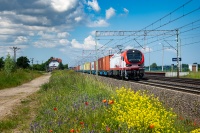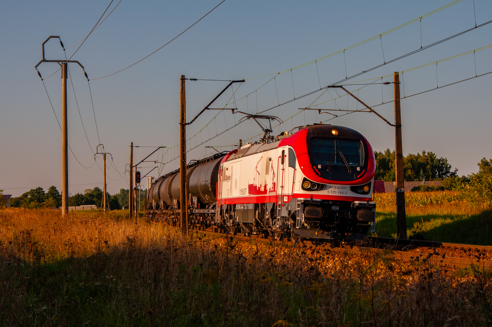 111Ed-037 z składem beczek zbliża się do podg. Dionizów jadąc dalej na Zduńską Wolę