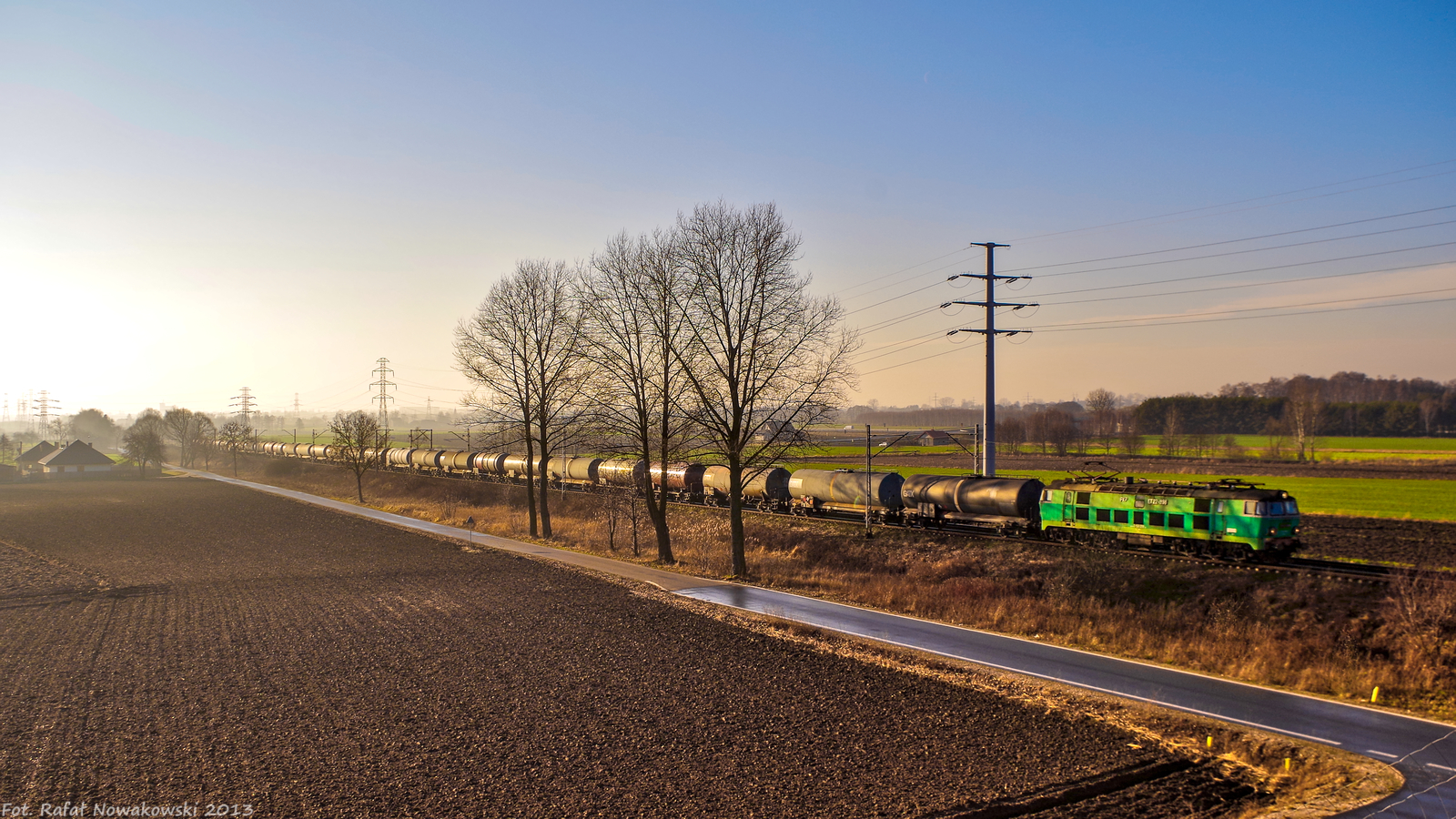 ET22-898 ze składem cystern zbliża się do wiaduktu gdzie linia kolejowa 14 krzyżuje się z DK14. Obecnie układ drogowy okolicy wygląda nieco inaczej ze względu na otwarcie zachodniej obwodnicy Łodzi tj. S14.