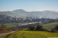 W tle widać klimatyczną stację Sobów, również kształtową rzecz jasna.
