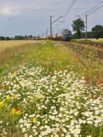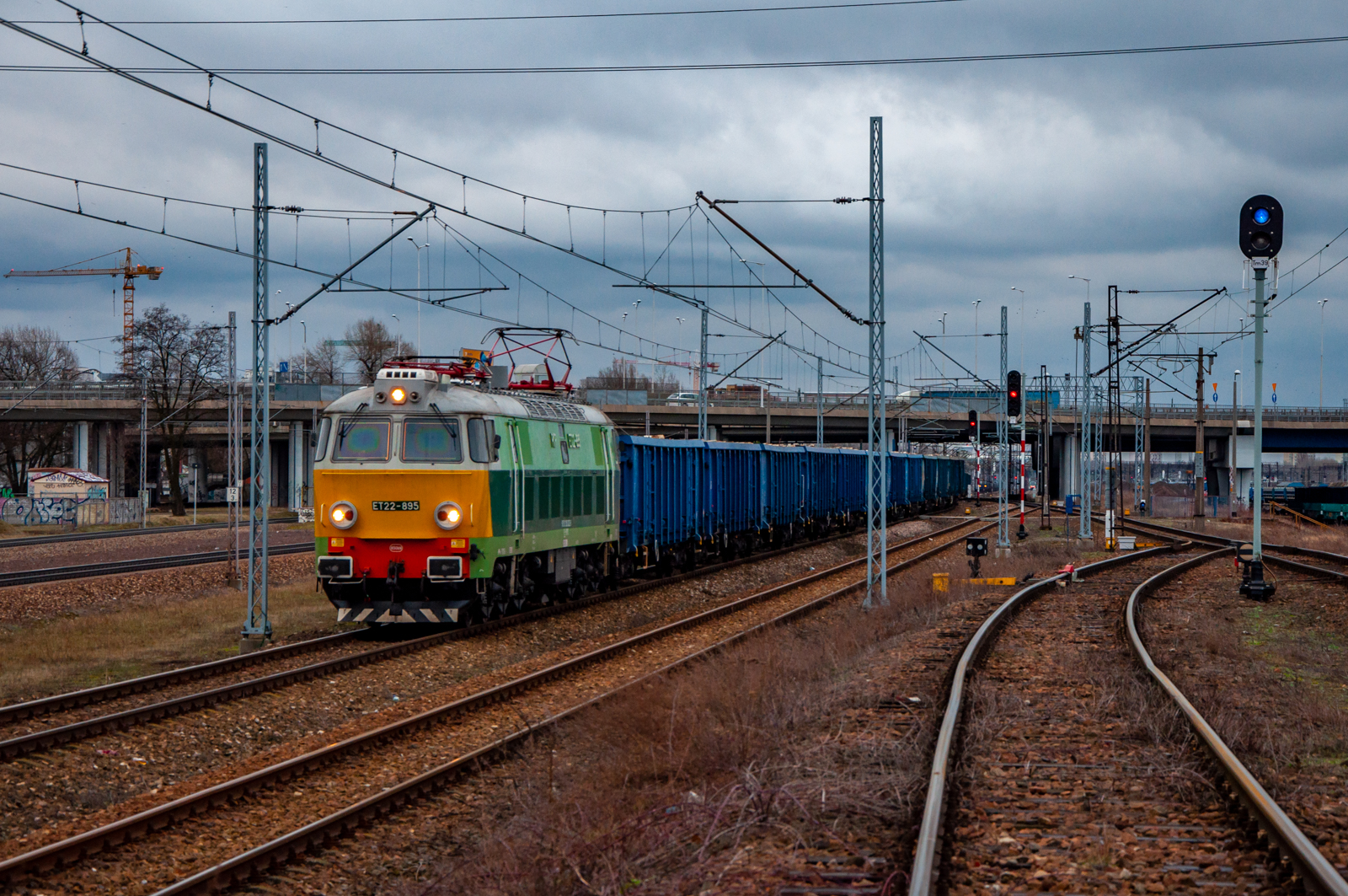 Żółtomordowy Byk ET22-895 ze składem węglarek relacji Skarżysko Kamienna-Kwidzyn po chwilowym postoju na WPT wyrusza dalej po LK9 w stronę Legionowa.