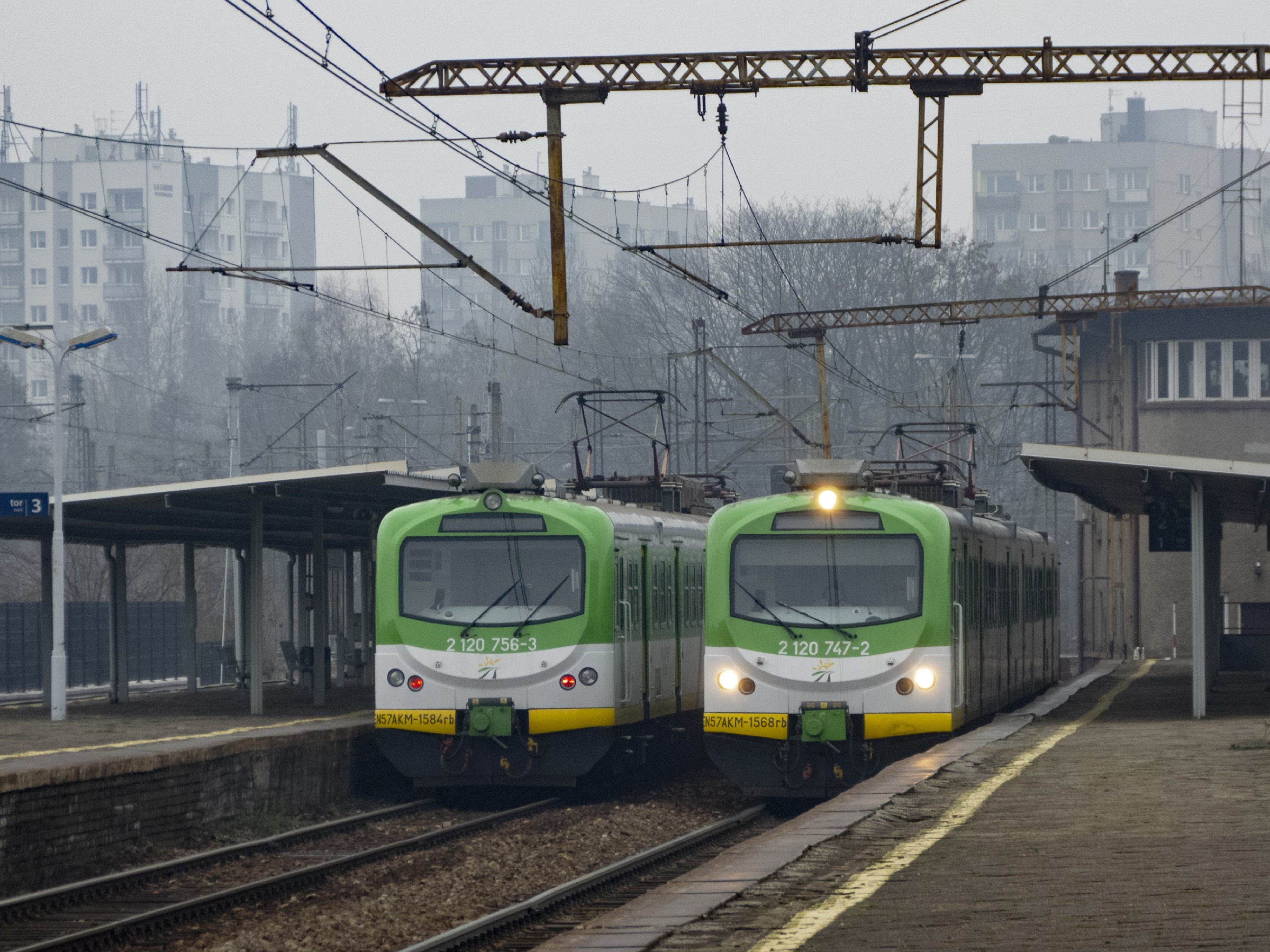 ...czyli tak, jak lubię. EN57AKM-1584 jako Os 44762 S7 relacji Racibórz - Katowice mija się z EN57AKM-1568 obsługującym Os 44717 S7 w przeciwnym kierunku. Jednostki ze zdjęcia są dwiema z czterech wynajętych przez Koleje Śląskie w obliczu braków taborowych, najczęściej można je spotkać na trasach do Raciborza i Chałupek.