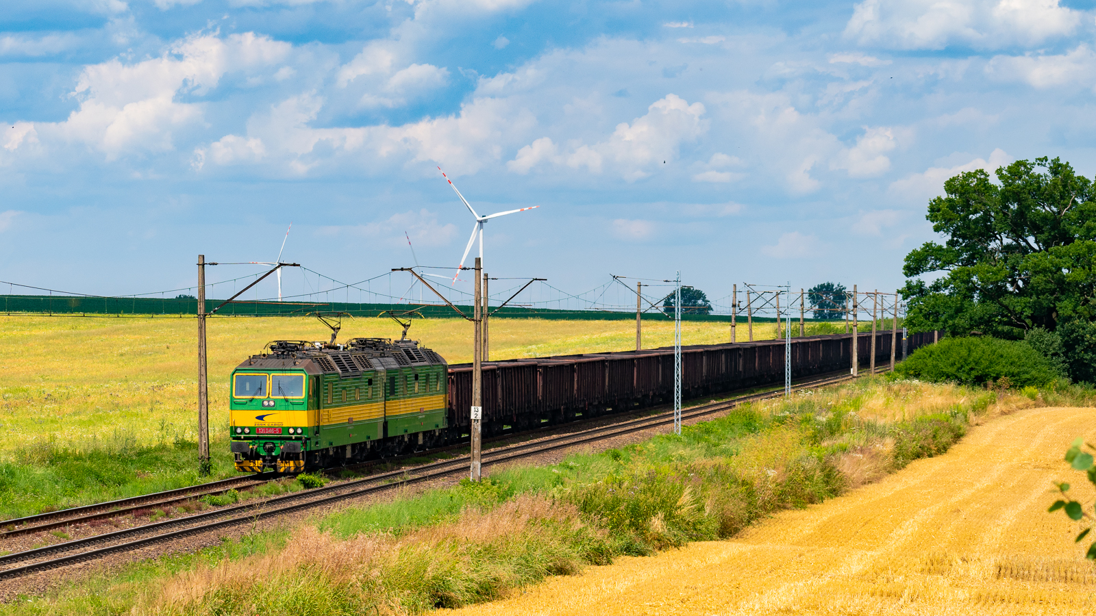 131 046-5 + 131 045-7 z węglarkami zmierza w kierunku stacji Toszek Północ.