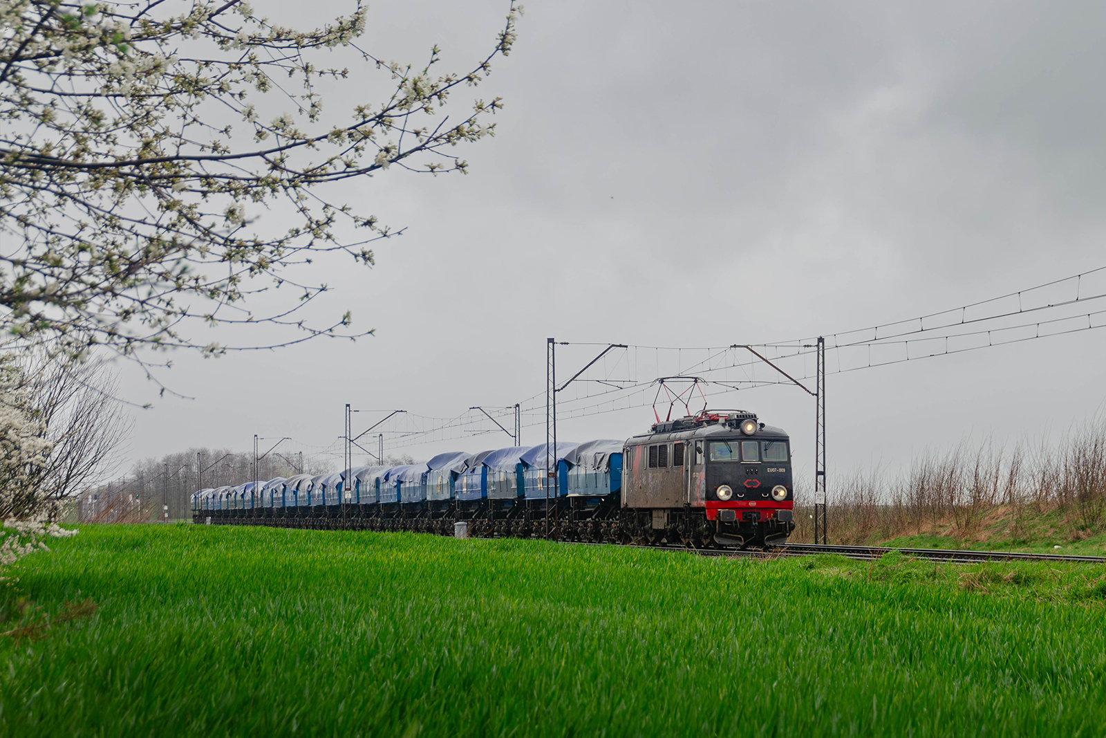 EU07-009 w służbie ZIKu Sandomierz prowadzi skład wagonów samowyładowczych załadowanych piachem do Huty Szkła Jarosław. Pociąg pokonuje w ostrym deszczu szlak Przeworsk - Jarosław i za niecałe 4 minuty zamelduje się na stacji w Jarosławiu którą skład minie na biegu.
