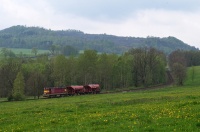 Motorak 810 560 z Os 17558 relacji Klatovy-Domazlice przejeżdża przez miejscowość Bezděkov.