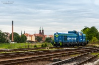 SM42-2184 manewruje po terenie terminalu kontenerowego PCC Intermodal w Starej Wsi koło Kutna. Zdjęcie wykonane z samej góry jednej z suwnic tego właśnie terminalu.