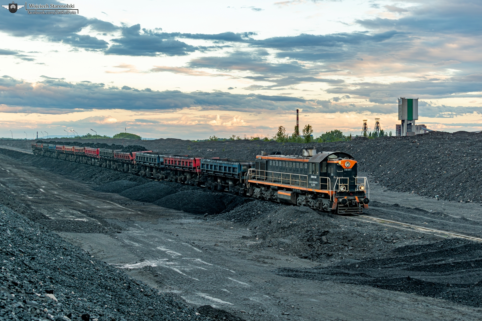 TEM2-068 rozładowuje skład radwanów na zwałowisku Jagielnia. Po prawej widoczne zabudowania KWK Szczygłowice, z której to owy skład przyjechał. Po rozładunku maszyna pojedzie na podg.Krywałd, skąd zjedzie z powrotem na w/w kopalnie.