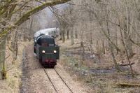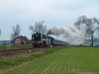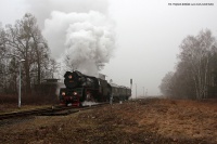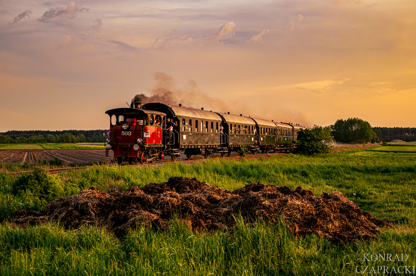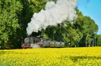 Cockerill 503 zwany Coco Chanel z ostatnim tego dnia pociągiem specjalnym relacji Kębłowo - Wolsztyn mija wiejski motyw w Starym Widzimiu. Na popychu niewidoczna Tubize 2069
