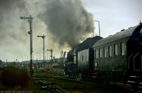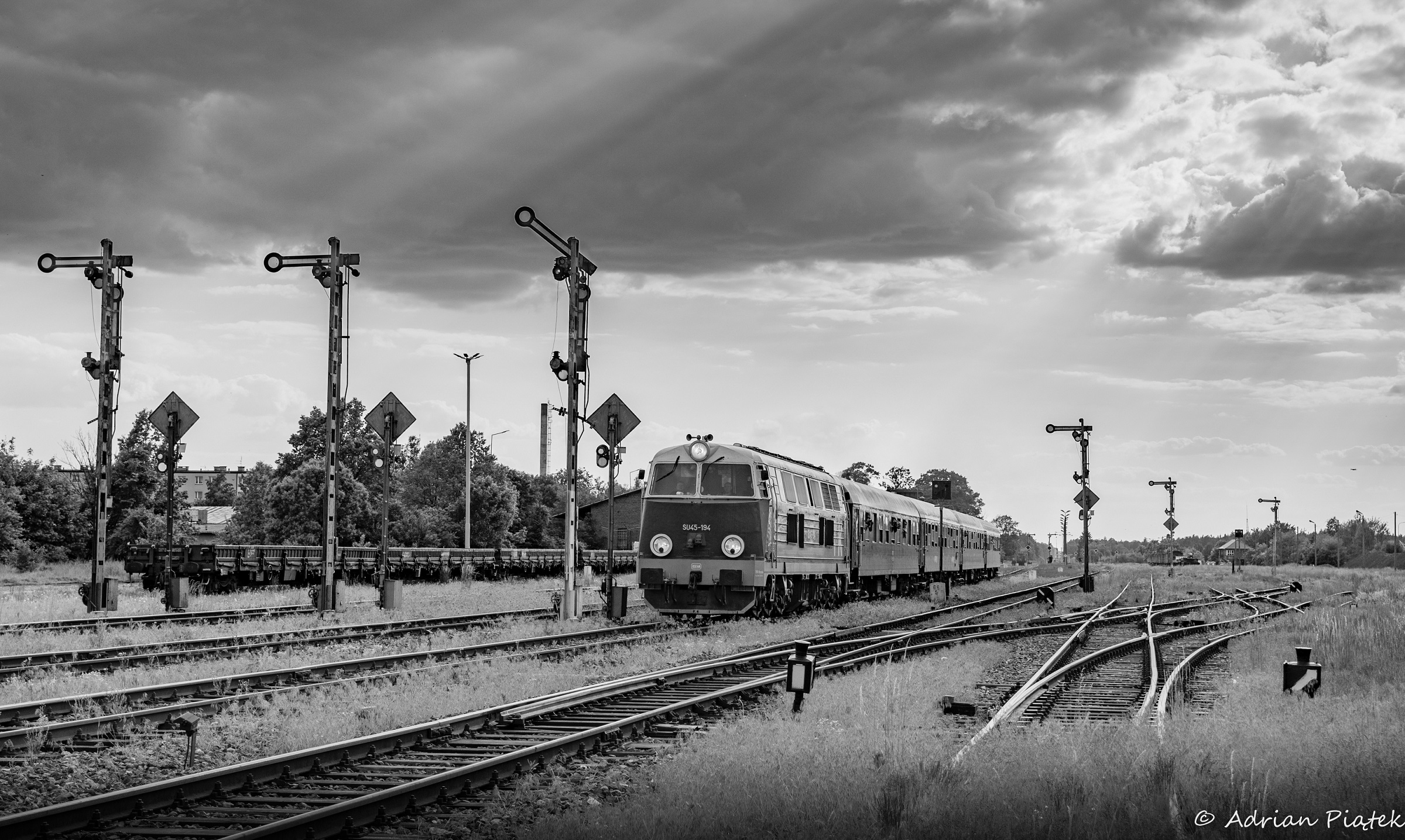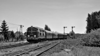 SU45-194 z pociągiem specjalnym "Niedźwiadek" relacji Laskowice Pomorskie - Gdańsk opuszcza stację Czersk.