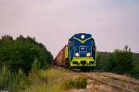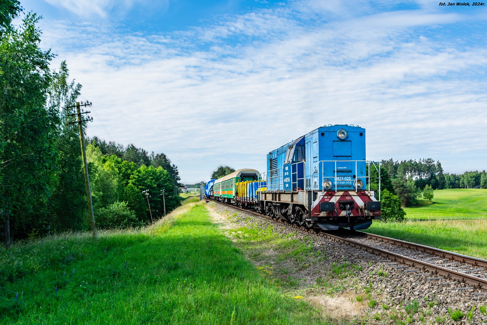 SM31-025 ze skrajnią rel. Wrocław Gądów - Gdynia Port, ślimaczym tempem pokonuje szlak Bąk - Kościerzyna. Pociąg zostawia za sobą p. o. Podleś oraz most nad Wierzycą.