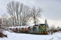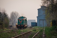 6Dg-025 jeżdżąca dla PNIUK Kraków uchwycona podczas pracy z oczyszczarką torową na torze 1 szlaku Łętownia - Nowa Sarzyna.