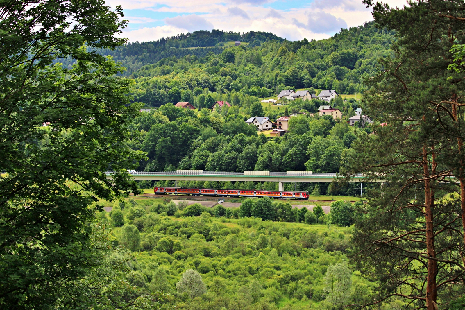 ED72-010 redukuje prędkość przed planowym postojem na przystanku Zembrzyce. Jednostka jechała w planie pociągu 30507 "Janosik" do Zakopanego.