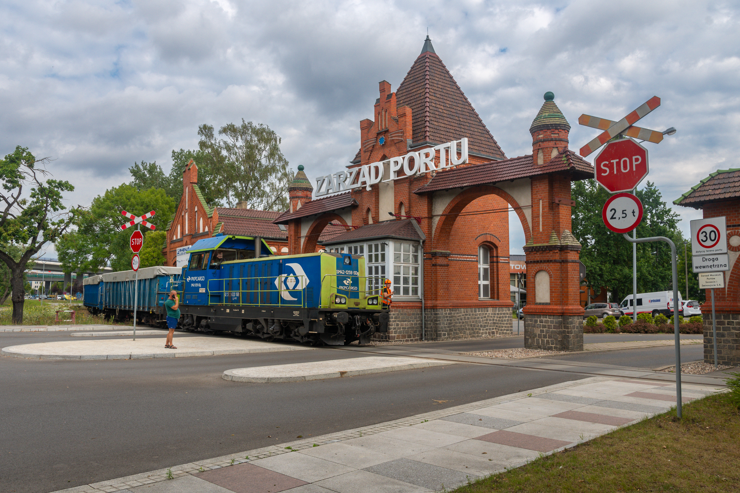Kiosk PKP Cargo wytacza z bocznic położonych na nabrzeżach dawnego Portu Wolnocłowego skład węglarek z prawdopodobnie ukraińskim zbożem. Wojna na wschodzie spowodowała duży skok przewozów w zachodniopomorskich portach, odżywiając między innymi prawie zapomniany przez kolej Kołobrzeg...