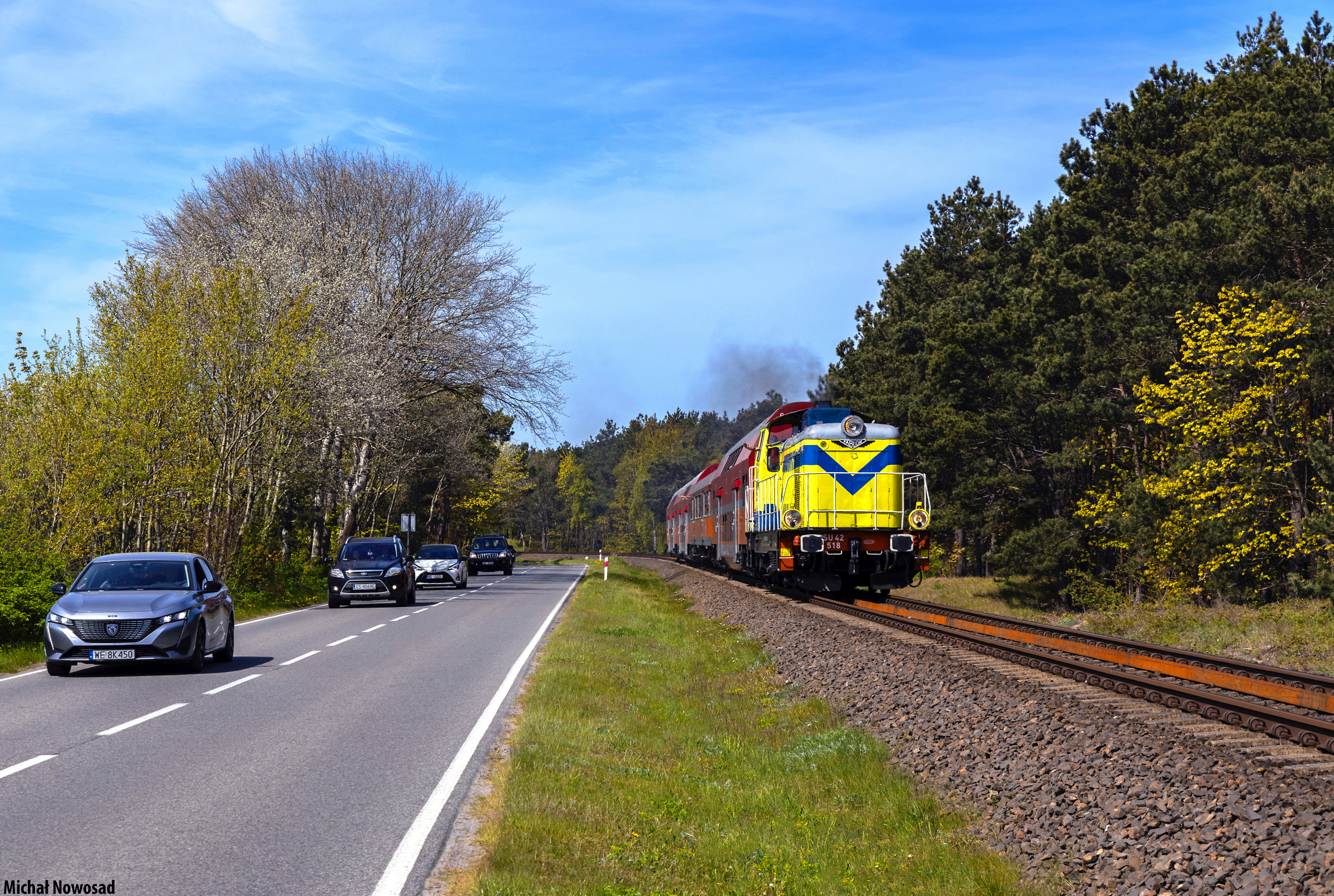 SU42-518 prowadzi pociąg Regio 90513 relacji: Gdynia Główna - Hel jadąc szlakiem Kuźnica (Hel) - Jastarnia.