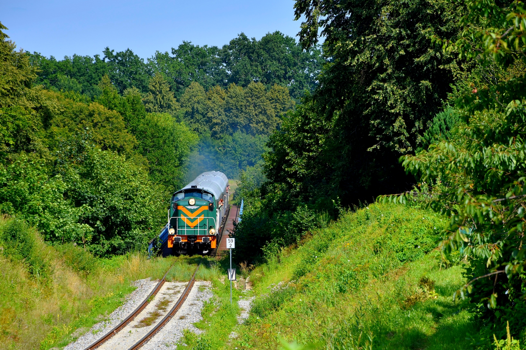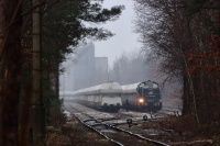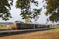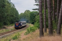 Pieniężno opuszcza pociąg specjalny firmy Turkol o nazwie "Warmia" rel. Elbląg-Braniewo-Olsztyn. Pociąg jechał, ze stacji początkowej do Braniewa linią 204 (Ostbahn). W Braniewie nastąpił oblot składu i zmiana linii, na 221. W kadrze Łajka SM42-741 z wagonami jest na moście kolejowym, nad rzeką Wałszą (o wysokości 30 metrów i długości 160 m, z 1885 roku). Szlak do stacji Orneta.