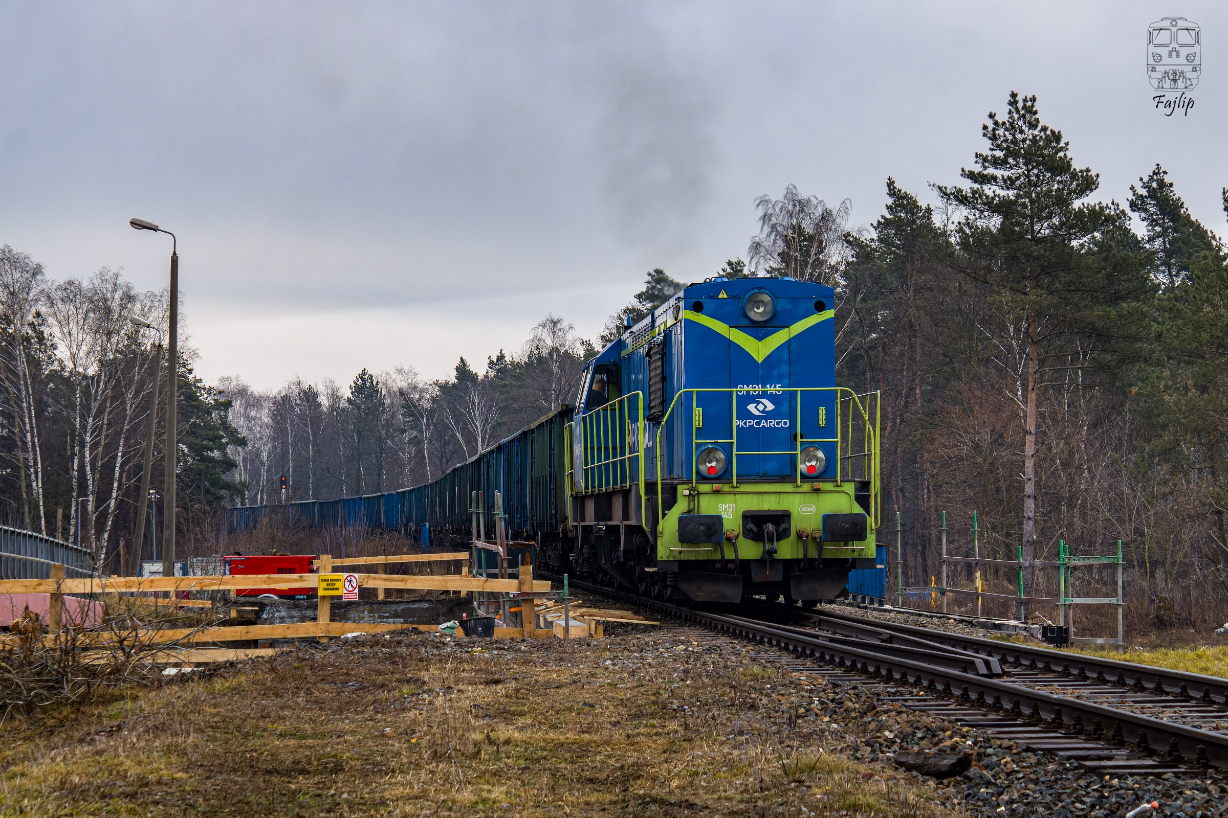 SM 31-145 jako popych składu węglarek prowadzonego przez ST44-1270 z Elektrowni Łagisza do stacji Dąbrowa Górnicza Ząbkowice, wjeżdża na stacje końcową. Niedawno "Szafa" została zakupiona przez przewoźnika TrainSpeed i oczekuje naprawy w Imbramowicach.