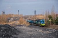 SM31-038 wraca ze zwałowiska KWK Sośnica pchając próżne wagony, które zostały tam rozładowane.