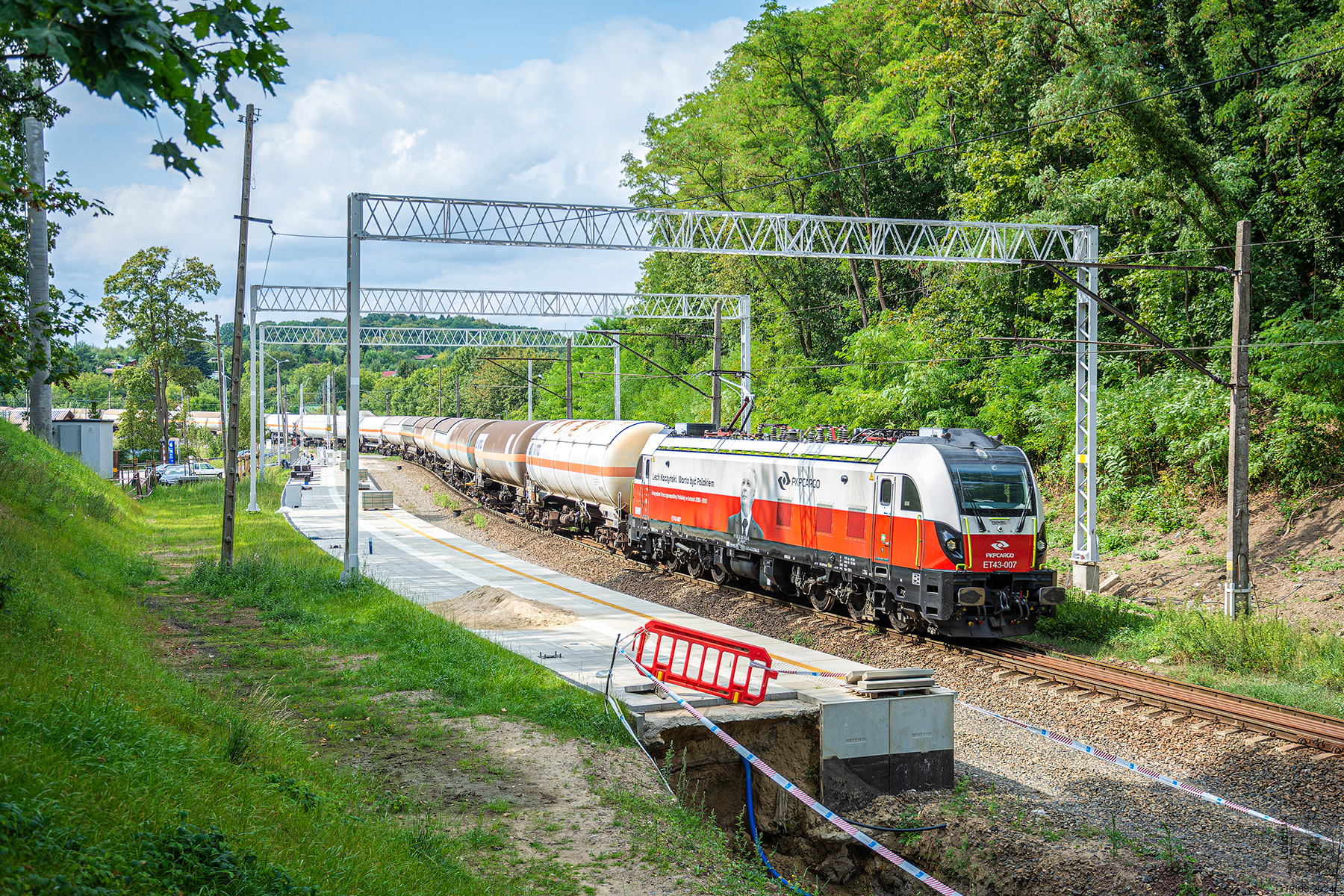ET43-007 w okleinie upamiętniającej ówczesnego prezydenta Polski, Lecha Kaczyńskiego przemierza liczne łuki znajdujące się w drodze do Polic Chemii. Modernizowany w ramach Szczecińskiej Kolei Metropolitarnej przystanek Szczecin Golęcino jest chyba najbardziej zawiły z całej linii kolejowej 406, ponadto niedawna wycinka krzaków na części wzniesień otaczających przystanek, pozwolił rozszerzyć panoramę oraz uwydatnić tworzącego się w tle "węża" ze składu.