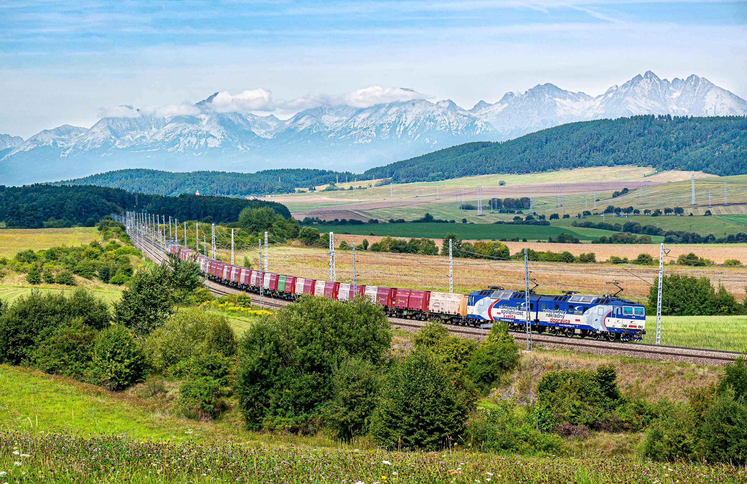 131 094 (na przodzie) oraz 131 088 (na "popychu") z krótkim składem platform, na których znajdują się kontenery Innofreight pokonują szlak Spišská Nová Ves - Vydrník jadąc dalej w kierunku Popradu. Bardzo urokliwe miejsce, pełne ciszy i spokoju, ogromna łąka z pięknym widokiem, w dole której przewija się mnóstwo pociągów po magistrali Koszycko-Bohumińskiej.