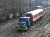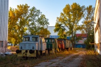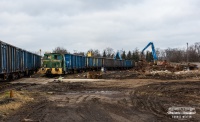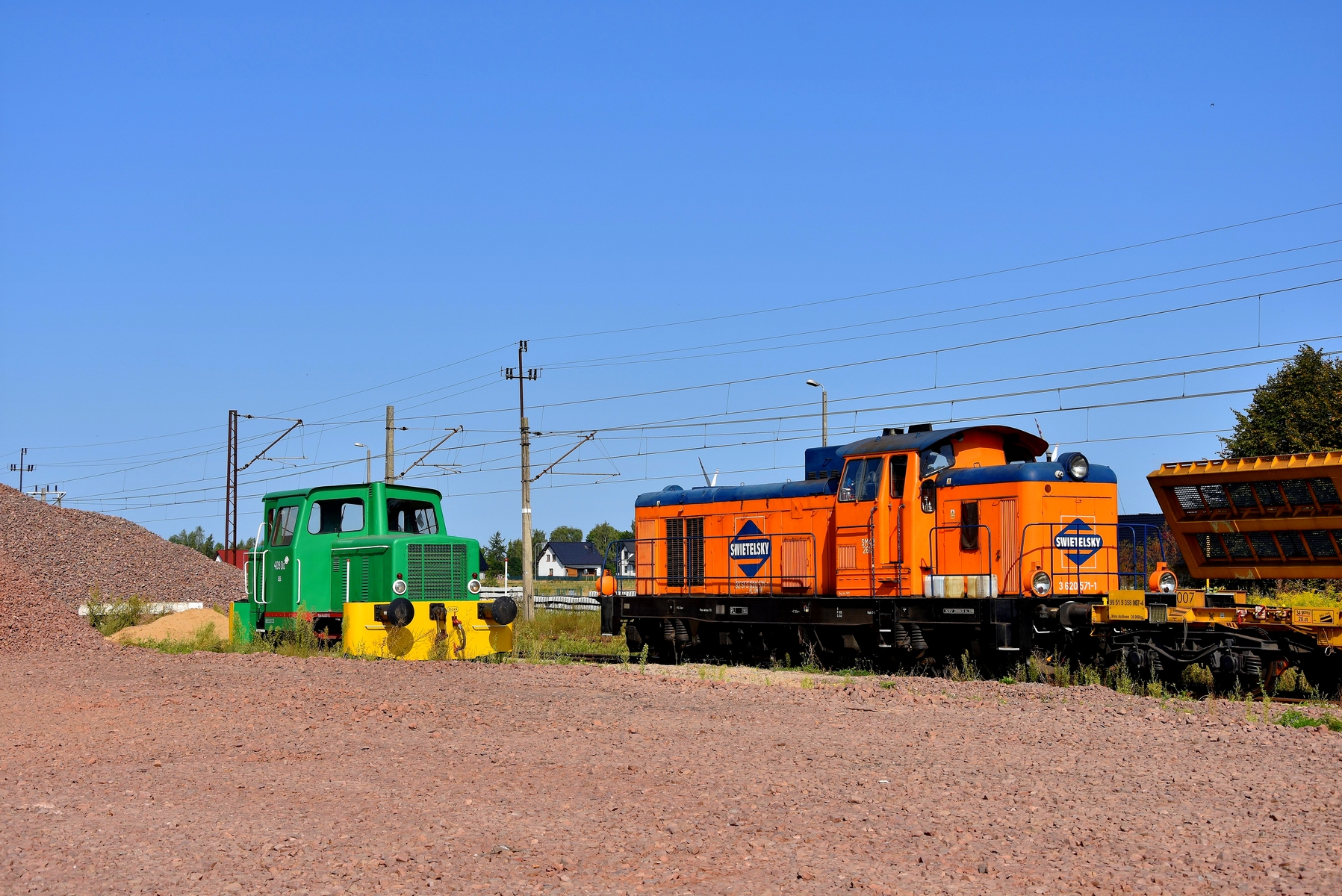 Potęgowo. Na bocznym torze miejscowej stacji stoi 409Da-535. Obok widoczna jest Stonka SM42-2613 ze składem rozjazdów.