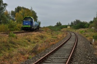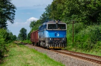 Nurek 750 275-0 ÄŒD CARGO z wagonem sÅ‚użbowym zbliża siÄ™ do stacji Teplice nad MetujÃ, którÄ… minie na biegu. Lokomotywa wczeÅ›niej przywiozÅ‚a do MezimÄ›stà trzy próżne wÄ™glarki pod zaÅ‚adunek, a teraz w drodze powrotnej bÄ™dzie zbierać wagony Å‚adowane z mijanych stacji. Najpierw zabierze trzy wÄ™glarki z drewnem ze stacji Police nad MetujÃ.