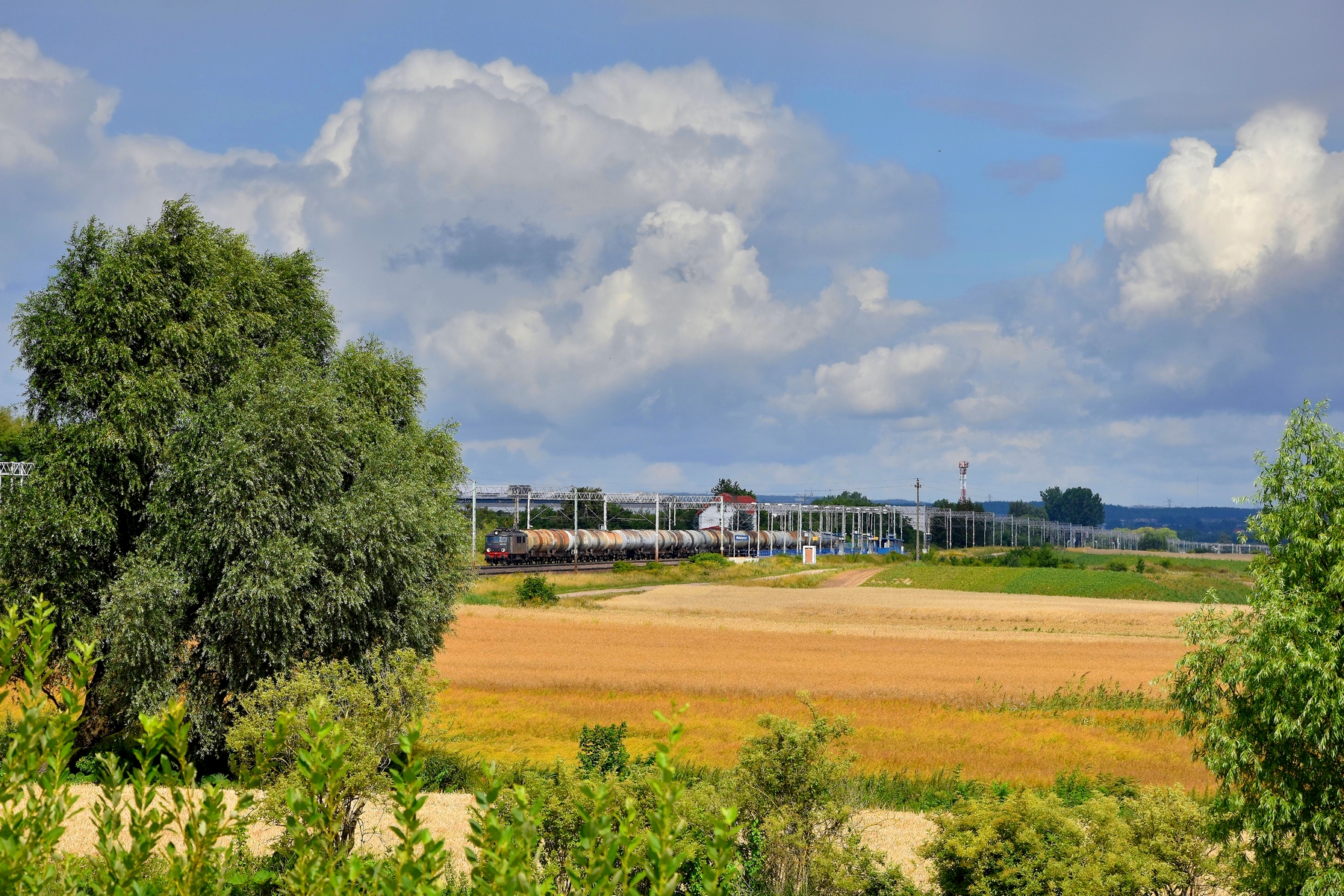 Przystanek osobowy Różyny, na szlaku Pruszcz Gdański - Pszczółki mija letnim przedpołudniem EU07-093, z pociągiem towarowym na południe kraju